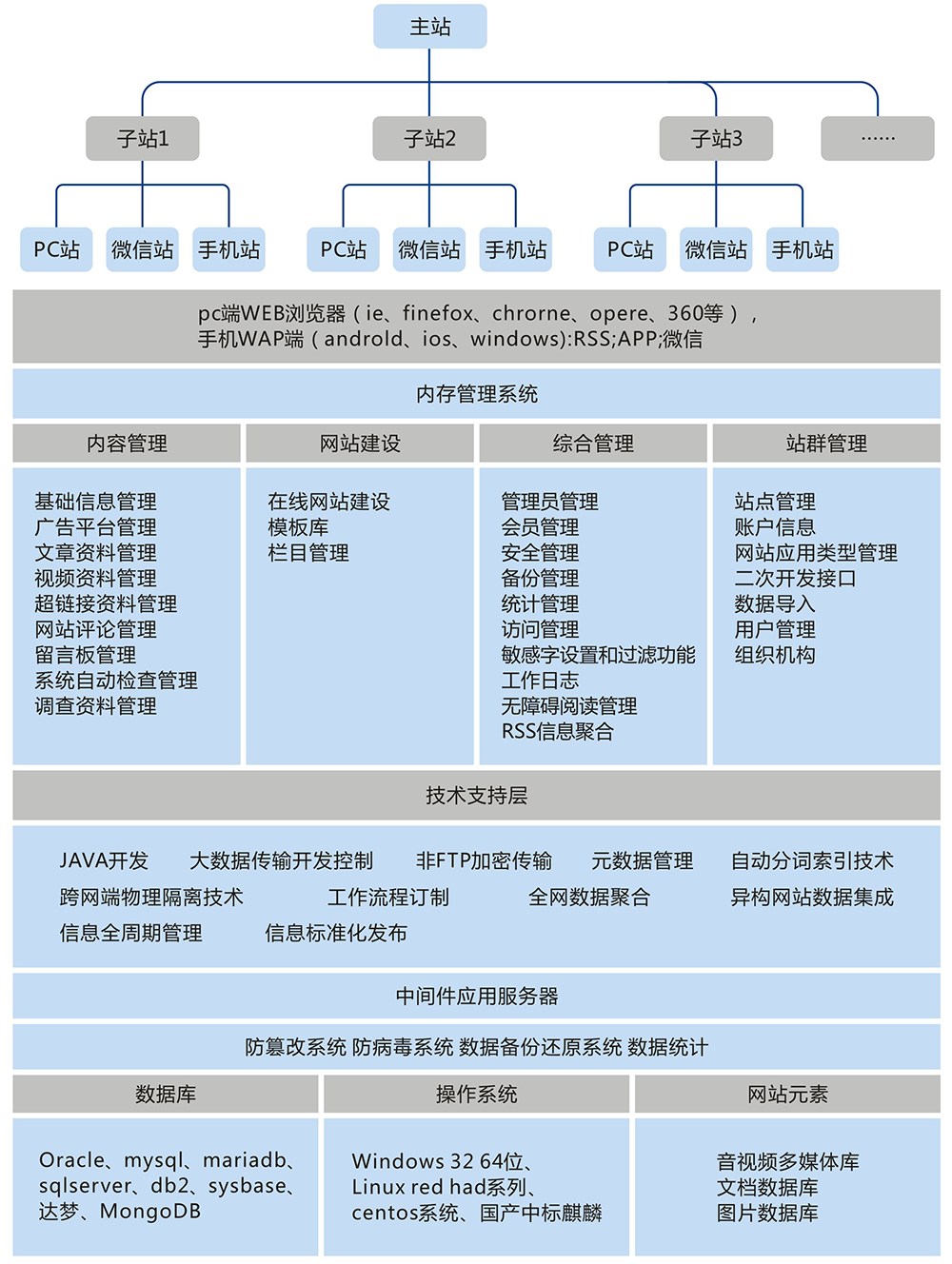 維網VCMS網站群管理平臺可以協助政府、高校、傳媒以及大型企業快速的管理和建設各級部門的子站點,完全可視化拖拽方式制作和維護,集策劃、設計和維護于一體,通過數據接口可聚合多系統內容。編輯就能快速做專題,無需設計和技術參與,制作周期短、成本低、效果好。站群系統主要面向政府、學校、集團。模式為"主站+分站”的模式,每個分站均屬獨立的系統。使用者可以便捷和集中式的對信息進行管控,從根本上解決了網站維護難,建設難,管理難等諸多網站建設與服務的問題。